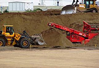Images above show larger scales cutting and carving works, together with specialist vibro compacting equipment for preparation of the main land remediation.
