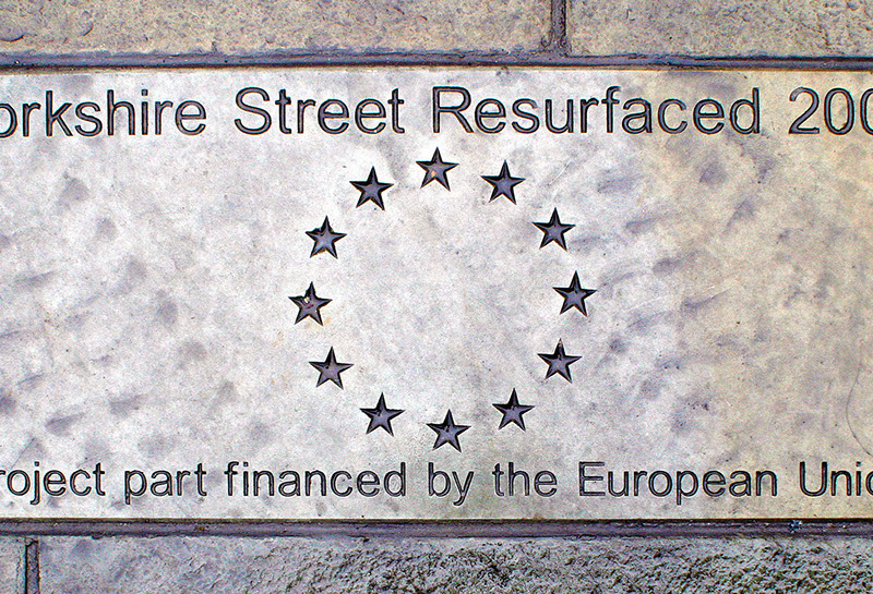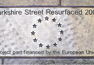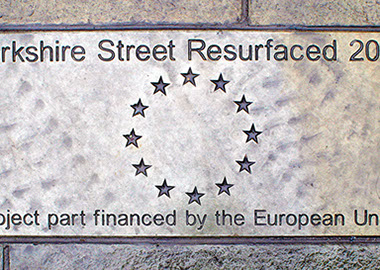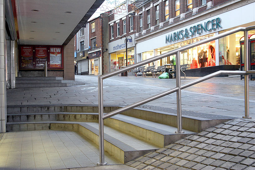 Repaving of the main shopping high street in Rochdale town centre. The work involved removing the existing tarmac road surface and laying natural stone flags, granite setts and conservation kerbs. Replacement of street furniture, drainage and installation of LED lighting.