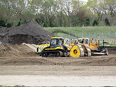 Project scope was to clear the existing land of underground obstructions, in particular 2000m3 of heavily reinforced concrete, remove unsuitable surface material and form the main future works compound and formation by moving approx. 250,000m3 of material around to the required areas of site, compacting the material using an dynamic compacting machine and subsequently testing the compaction. The site had trace elements of asbestos and as such air monitoring was continually check.
